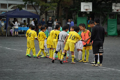 本日のつね賞は たけ ひゅうま おか こく です。4人とも自分よりもはるかに大きな相手にもひるむことなくプレイすることができ、見ていてとりはだがたちましたよ。さぁ。この経験を自分たちが中心で出る学年のゲームで、生かしていきましょう。本日、会場準備から運営を担当していただき、対戦していただいた富士見ヶ丘蹴球団の関係者の皆様、大変お世話になりました。ありがとうございました