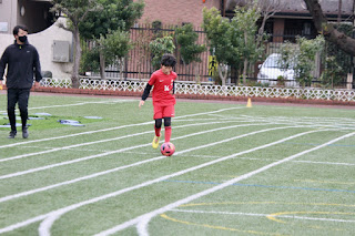 キーパーとしての動きは少しだけ進歩してきましたね。あとは全部蹴ってしまわず、キャッチするしない・蹴る蹴らないの判断ができると良いですね。プロの試合でキーパーの動きを観察してみよう!フィールドでは守備も頑張っていました!